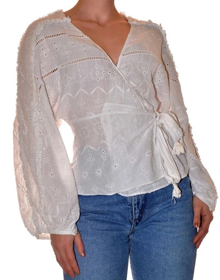 Blouse blanche à nouer taille 34/36 manches longues col V - photo numéro 1