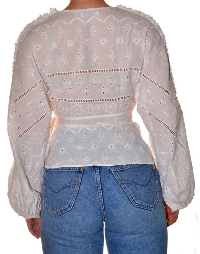 Blouse blanche à nouer taille 34/36 manches longues col V - photo numéro 6