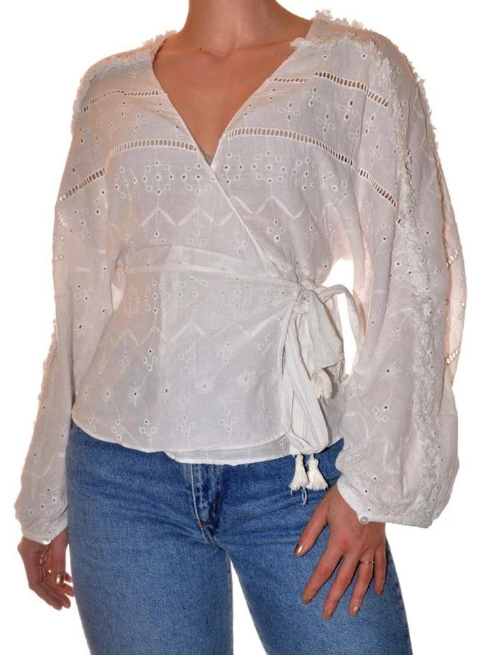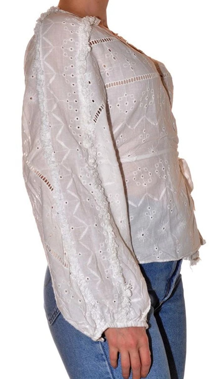 Blouse blanche à nouer taille 34/36 manches longues col V