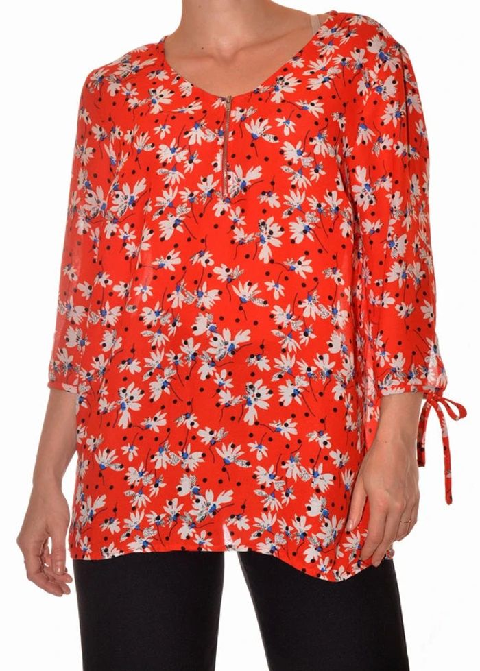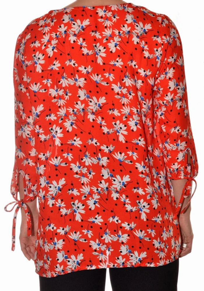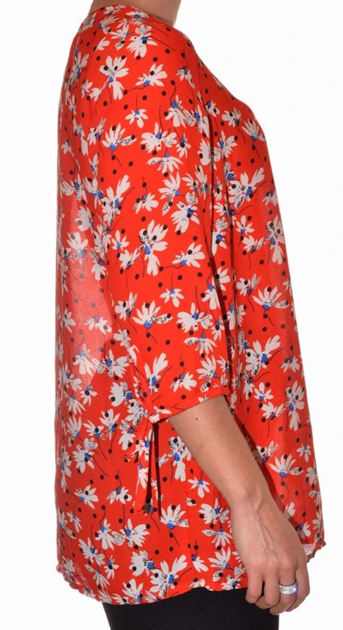 💖Jolie blouse manches 3/4 rouge à motif floral taille 40 épaule à épaule 40 cm aisselle à aisselle 52 cm longueur 69,5 cm