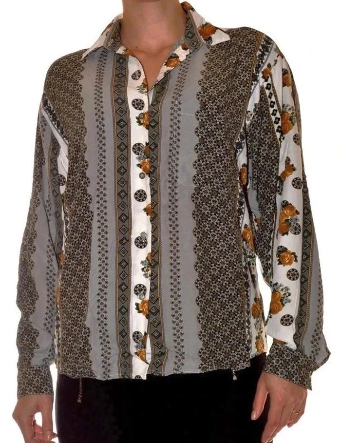 chemisier manches longues vintage motif floral fluide taille L - photo numéro 1