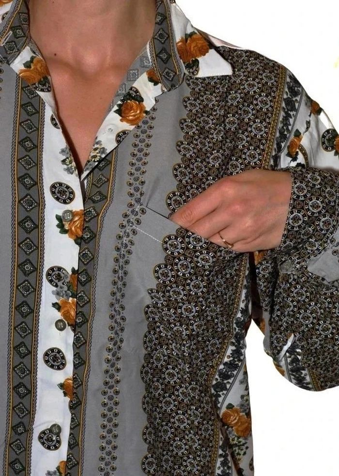 chemisier manches longues vintage motif floral fluide taille L - photo numéro 5
