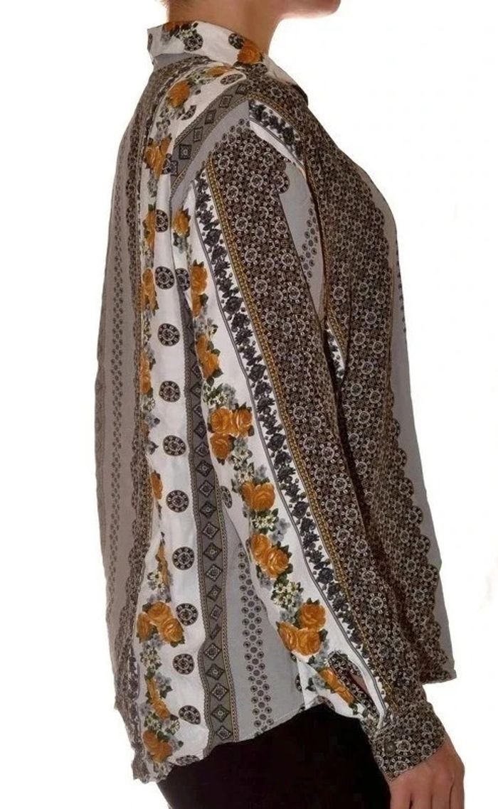 chemisier manches longues vintage motif floral fluide taille L - photo numéro 2