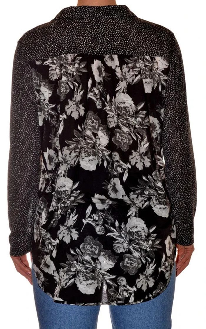 Long chemisier manches longues noir fluide casual motif floral taille S/M
