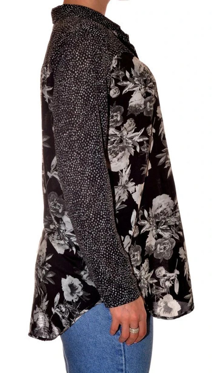 Long chemisier manches longues noir fluide casual motif floral taille S/M - photo numéro 1