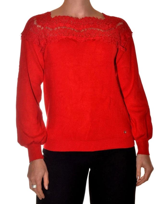 🌸Elégant pull à manches longues rouge uni avec dentelle #elegantpullover #pullkaporal34 #pullrougedentelle #pulldentelle34 #pullrougeuni #kaporalfemme #kaporal34femme