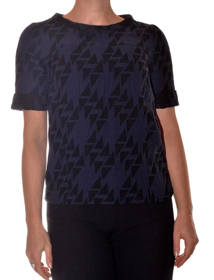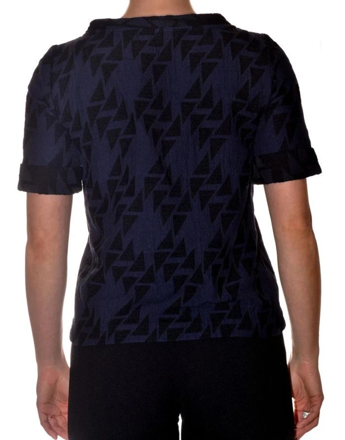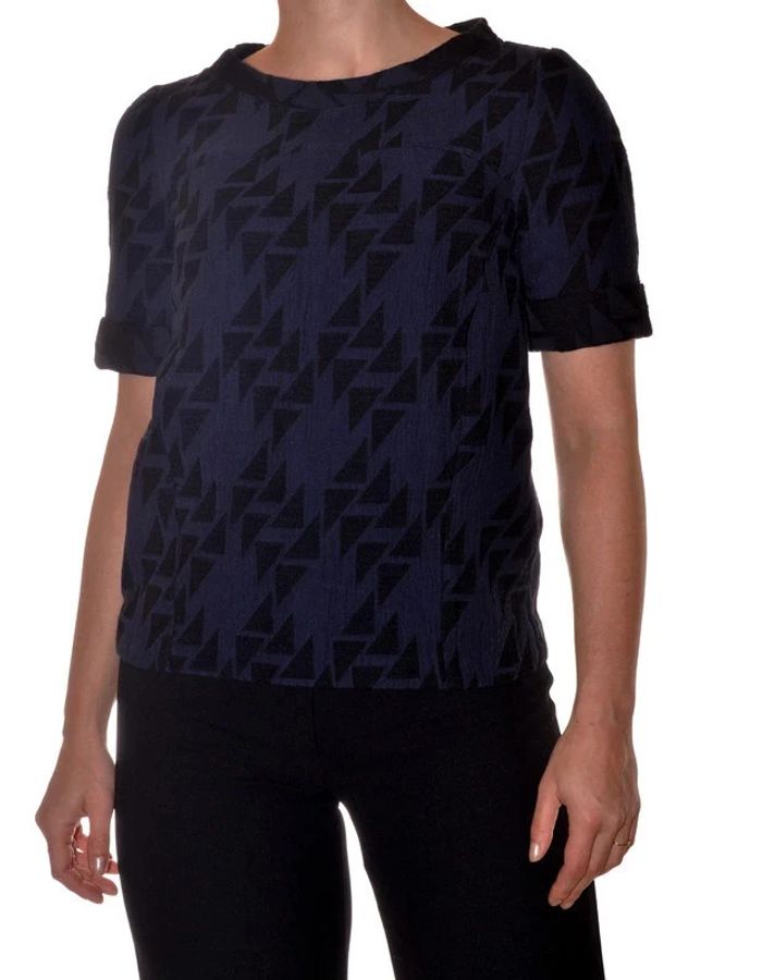 🌸Bleu marine à motif losanges noirs 32% coton 27% polyester 19% laine 12% acrylique 8% polyamide 2% autres fibres #tshirtlaine36 #tshirtautomnehiver #tshirt36promod #tshirtmisaison36