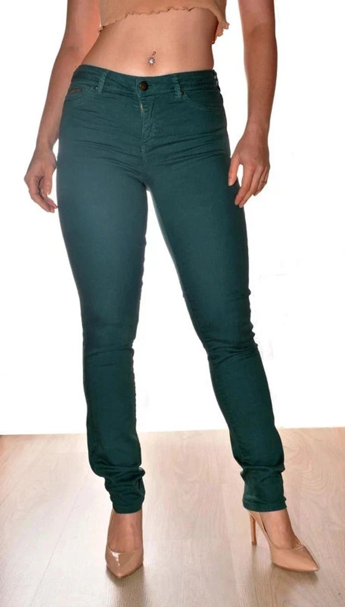 pantalon skinny taille basse vert uni taille 36 - photo numéro 1