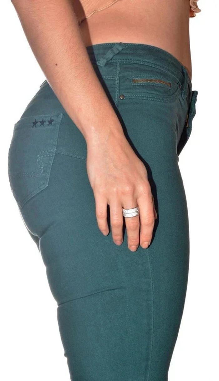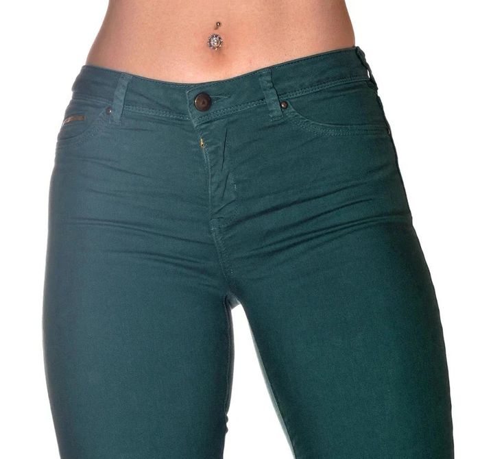pantalon skinny taille basse vert uni taille 36 - photo numéro 2