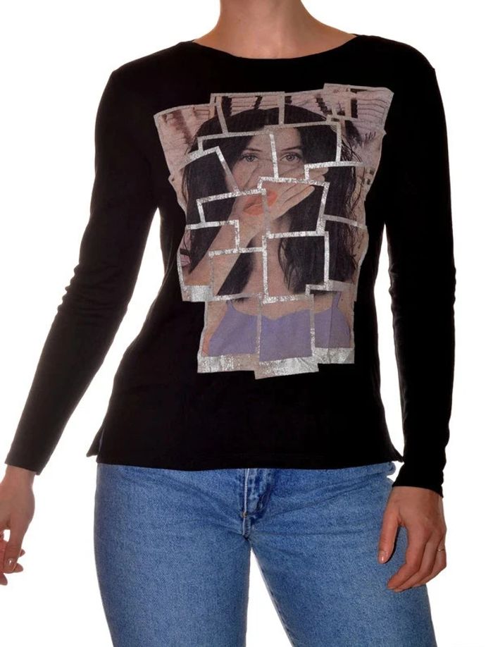 tshirt manches longues noir motif visage femme taille M - photo numéro 1