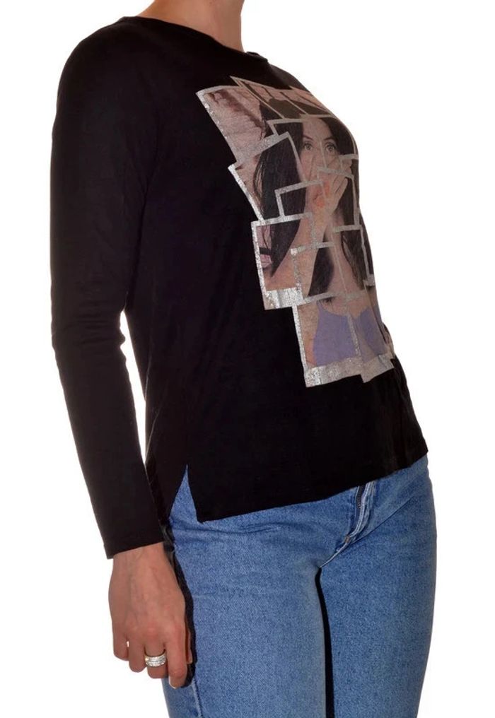 tshirt manches longues noir motif visage femme taille M - photo numéro 5
