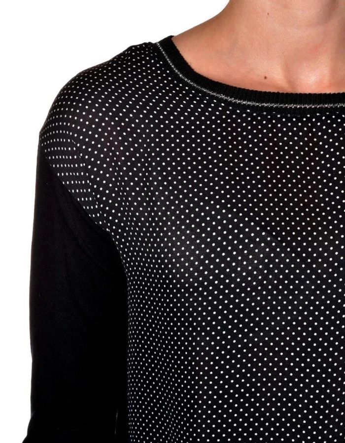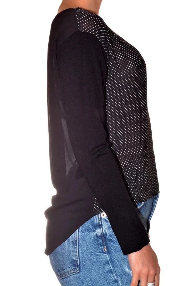 Blouse manches longues noire à motifs pois blanc taille M - photo numéro 1