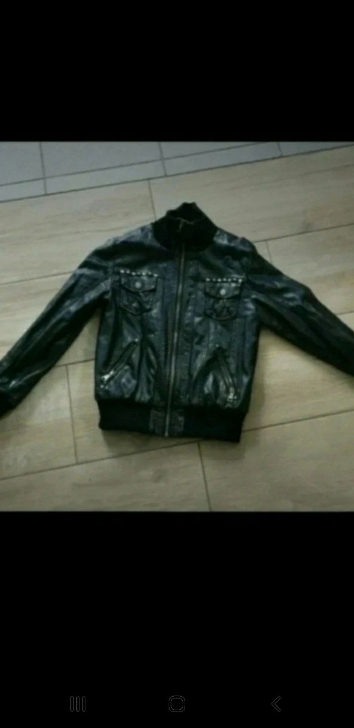 Blouson noire fille en simili cuir légère doublure polaire Porté reste correct Taille 10 ans
