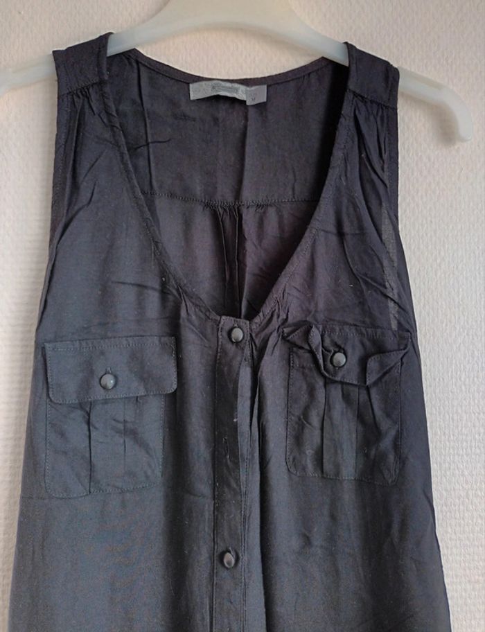 Robe longue sans manche avec ceinture intégré. La robe lui manque 2eme bouton . Si vous voulez je peux recousu 1 bouton noir pas pareil que les autres car je nais pas .robe en très bon état #razac2022femmem