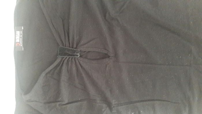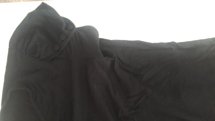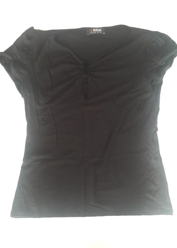 Top morgan taille L. Noir avec detail bouton sur les manches et "goutte" au niveau du decolleté