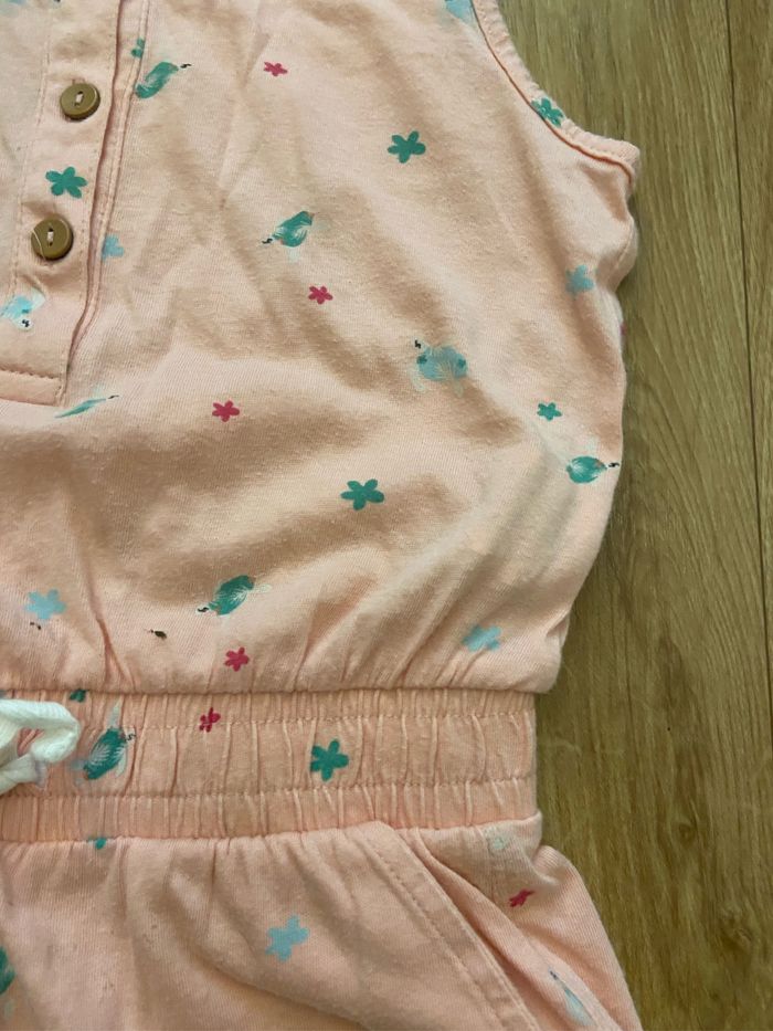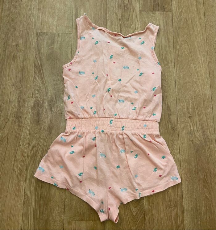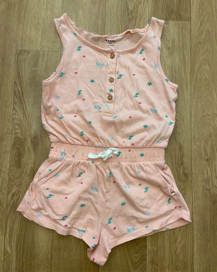 Combinaison short Couleur Abricot imprimé fleurs oiseaux Coton