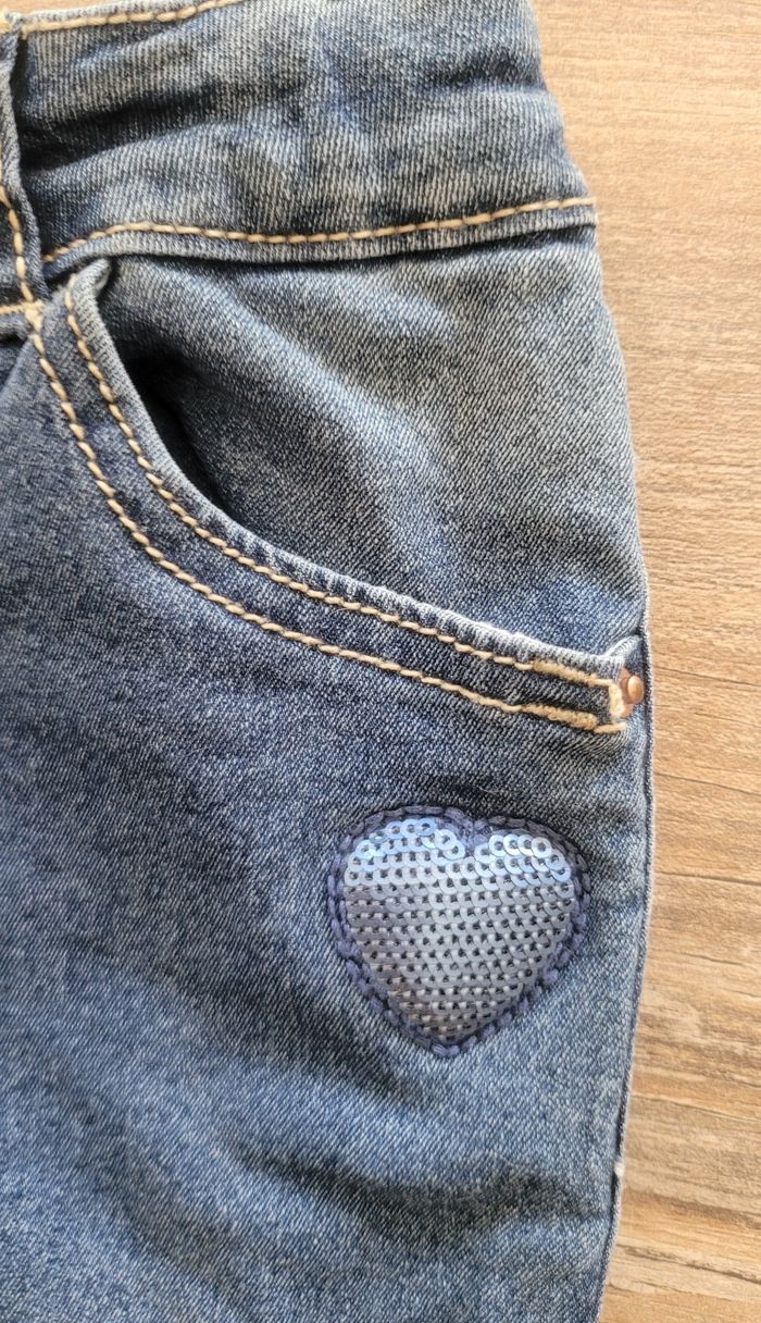 Joli jean slim Ajustable à la taille Coeur sequins sur le devant #fille7anstattoogirl_3
