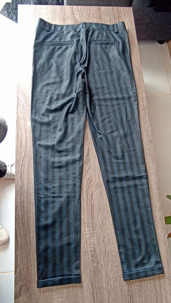 Pantalon droit rayé noir et bleu marine en bon état taille s