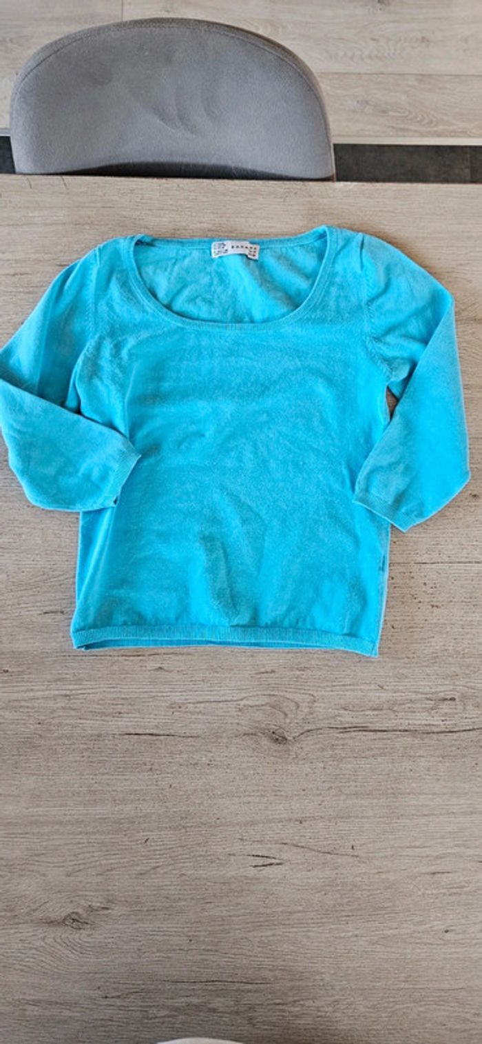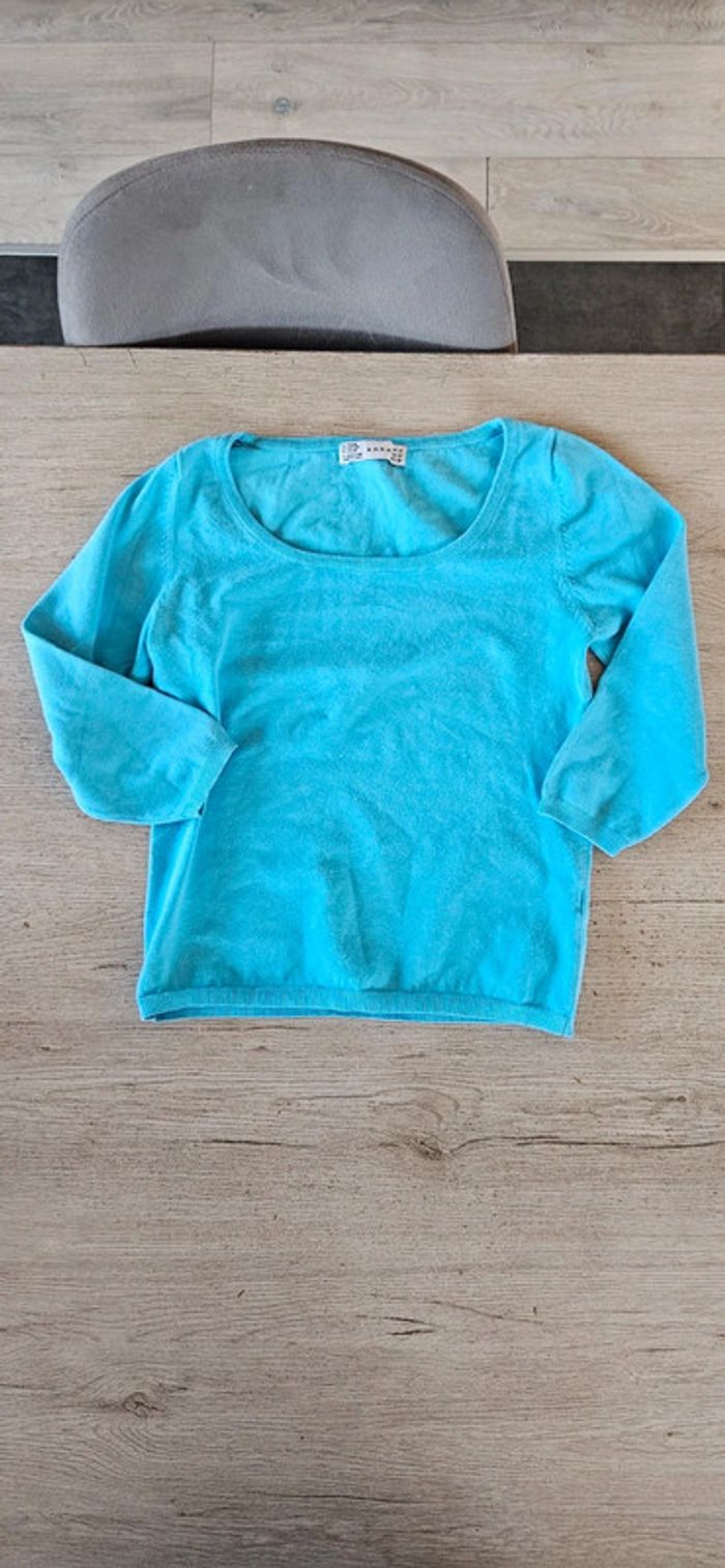 Pull bleu clair à manches 3/4, Zara, taille M - photo numéro 1