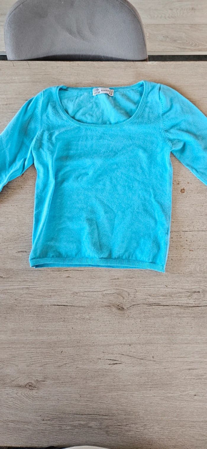 Pull bleu clair à manches 3/4, Zara, taille M - photo numéro 7