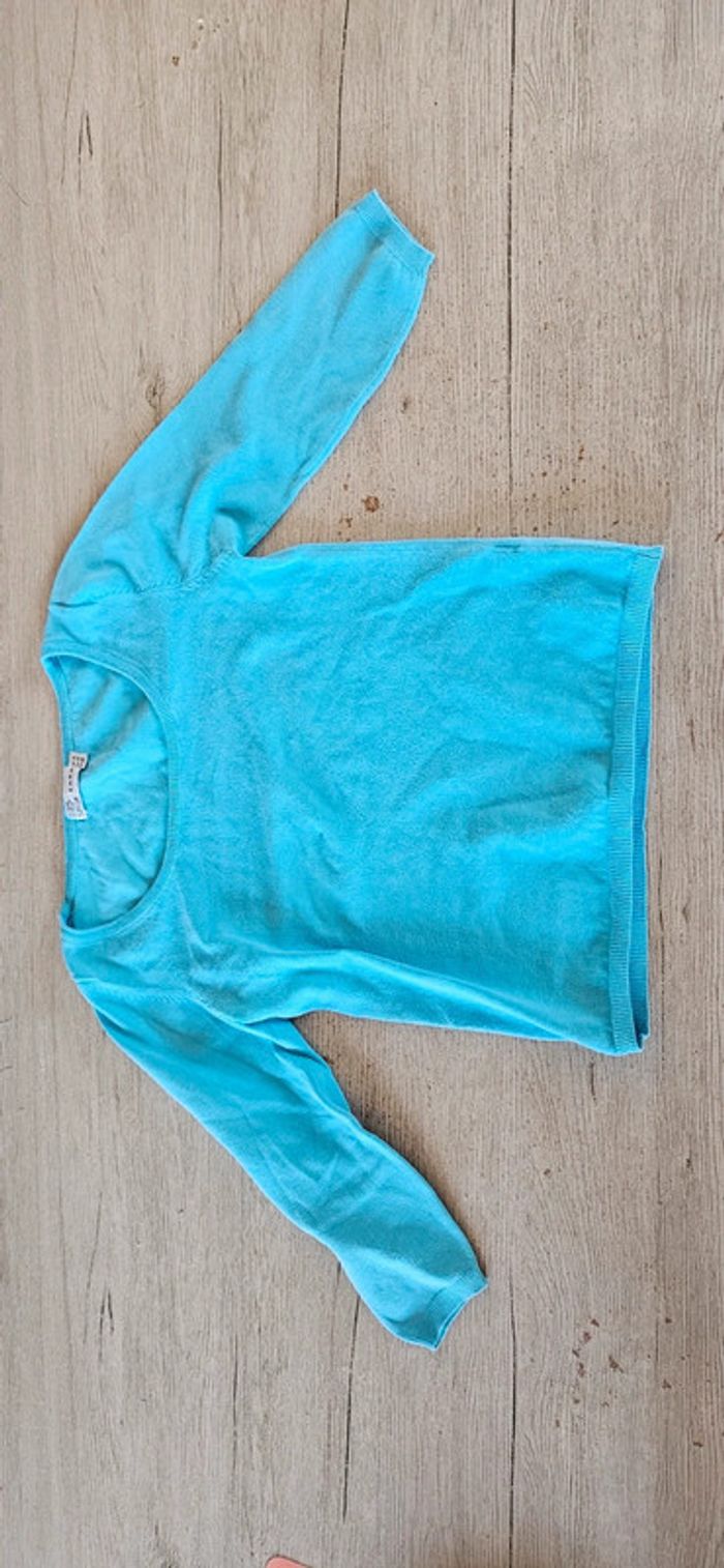 Pull bleu clair à manches 3/4, Zara, taille M - photo numéro 5
