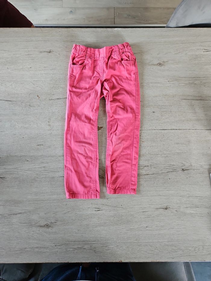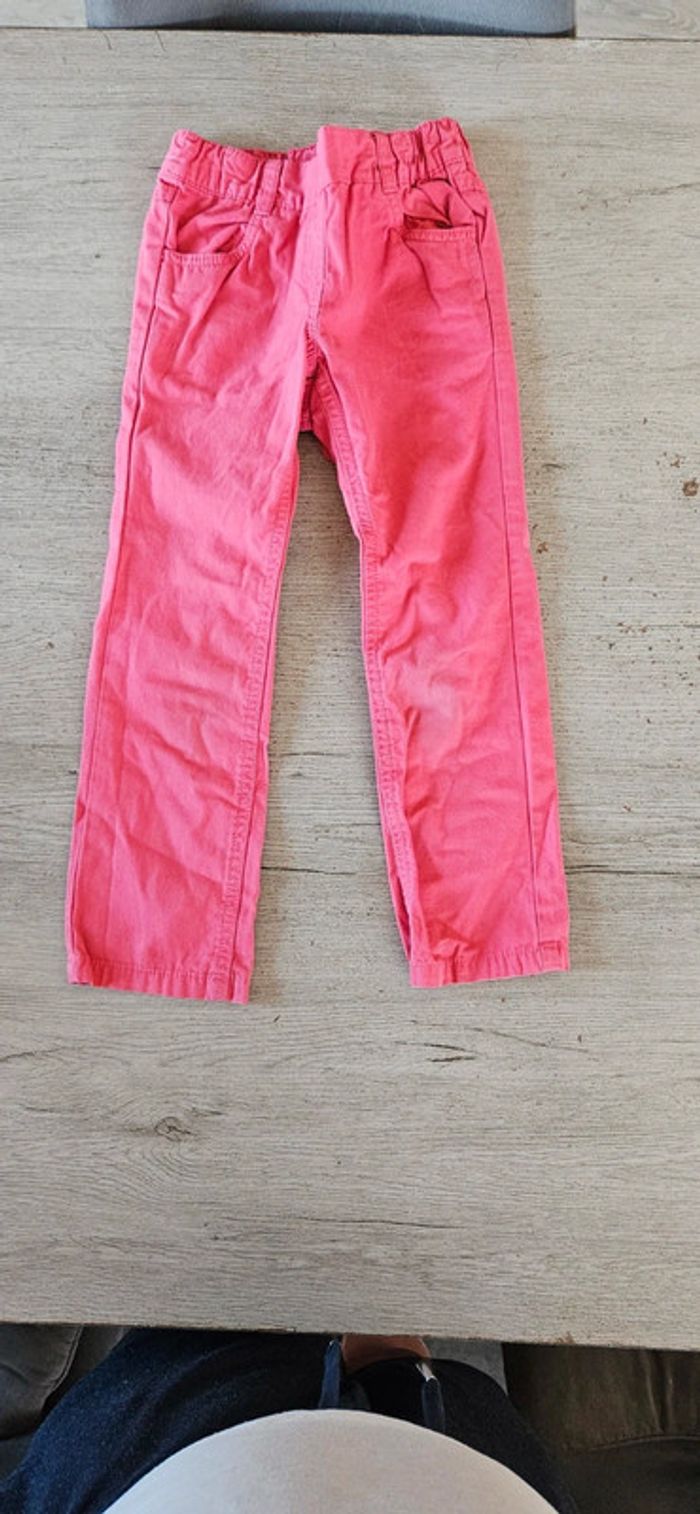 Pantalon pour fille de NKY de taille 5 ans. Élastique à la taille. Avec poches avant et arrière. Pas de bouton ni de tirette. Pantalon non élastique sauf à la taille. Assez léger. Peu mis. Convient bien pour du 5 ans Attention, micro tache vers 1 des genoux #deborahtock_5ans