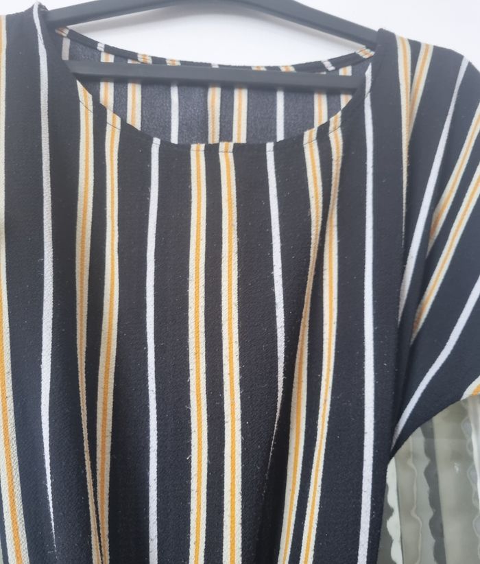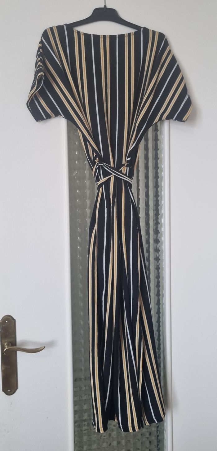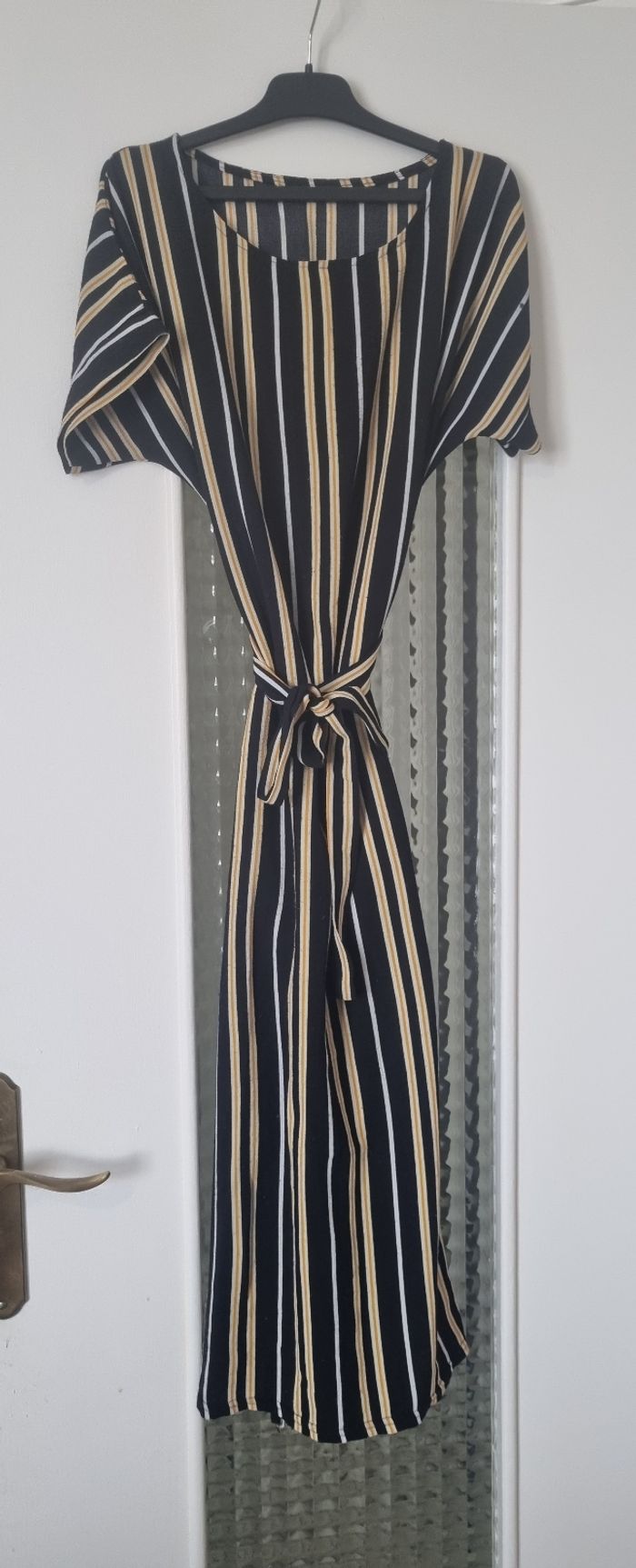 robe longue fluide couleur noir et jaune à rayure ceinture à nouer à la taille taille 14ans très bon etat #robelongue #robelonguefille #robenoirarayure #robefille14ans #fille14ans