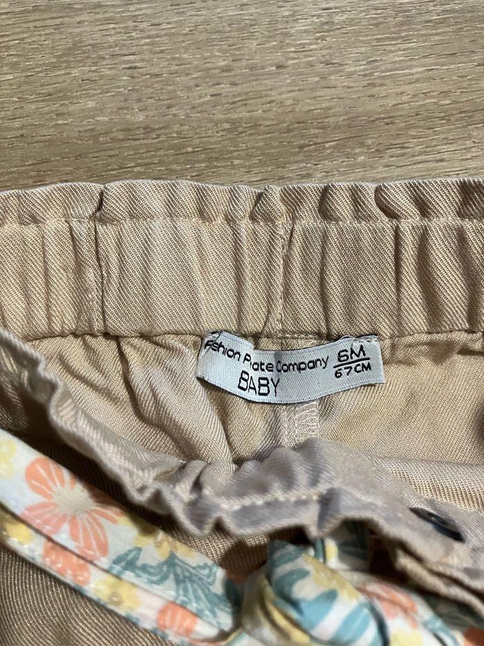 Pantalon beige avec ceinture souple fleuris en tissus Fashion Private Company taille 6 mois Très bon état