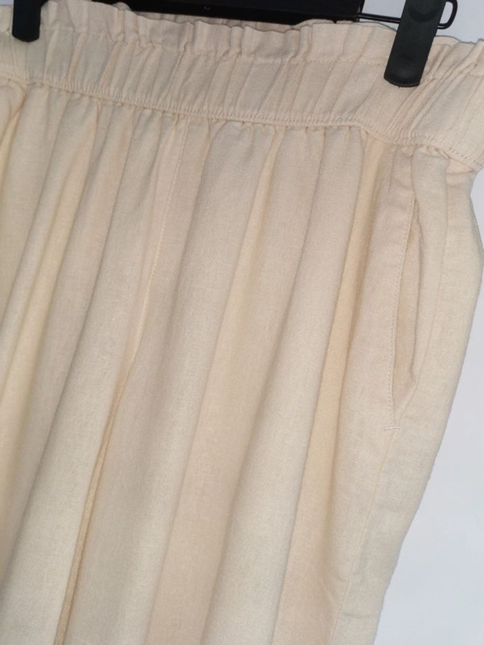 NEUF jamais porté 🏷 Jolie jupe-culotte jambes larges Beige/Écru/Crème : lin/viscose 2 poches sur les côtés Taille haute élastiquée BPC = marque Bonprix Longueur mollet 85 cm Taille FR 40/L - EUR 38/M Superbe effet plis larges🌸