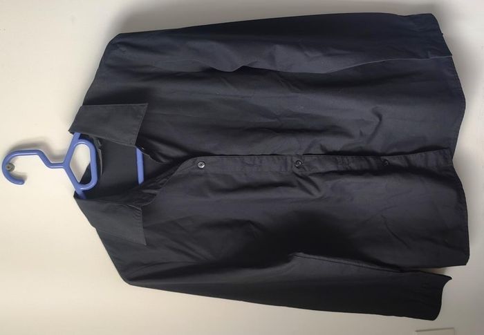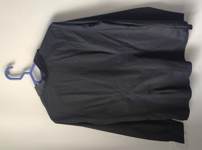 Chemise très peu portée (une ou deux fois). En excellent état. Chemise noire manches longues légèrement cintrée à la taille. Polyester 65 % / Coton 35 %. Taille L (40). Bouton de rechange inclus. Longueur : 69 cm Largeur épaules : 39 cm