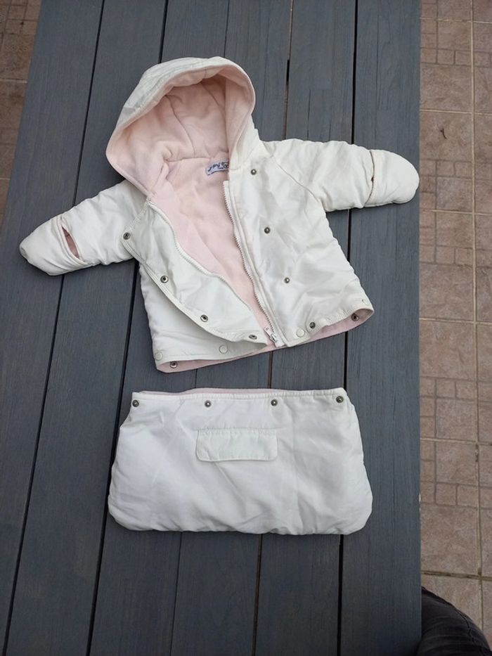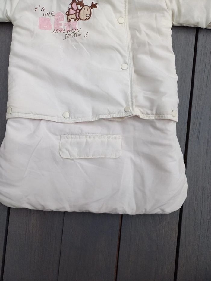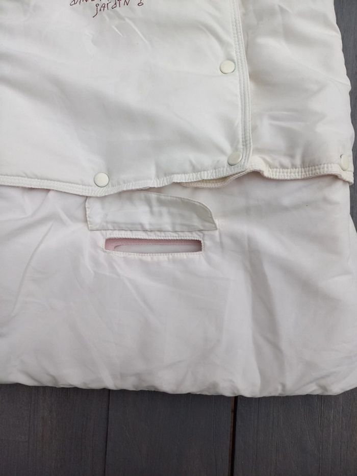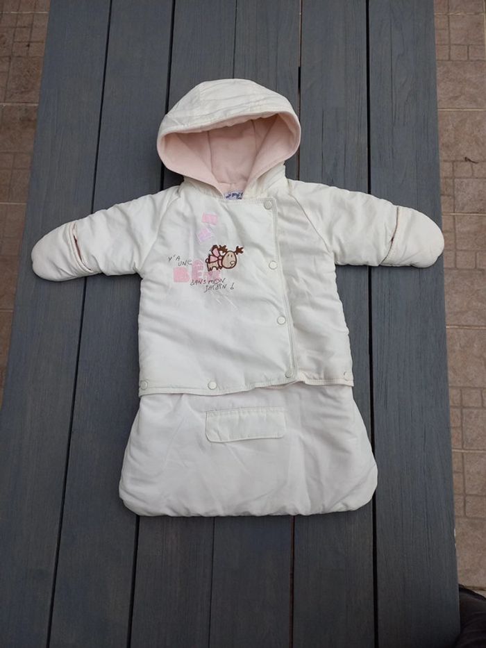 Chancelière couleur crème, marque Mini-gang en taille 0-3 mois, les deux parties sont détachables. Très bon état.