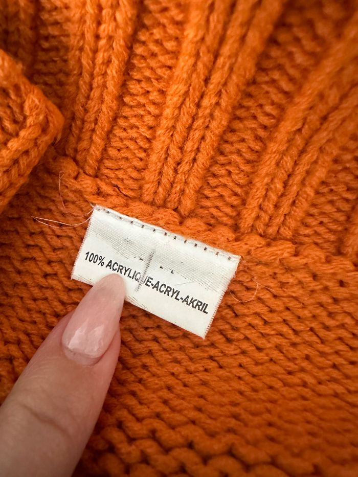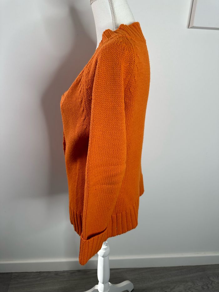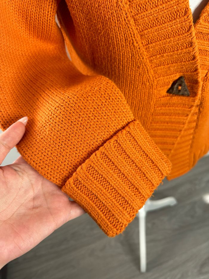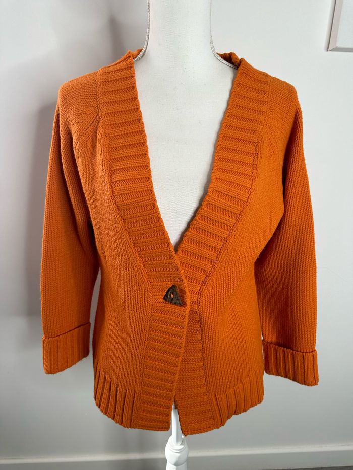 Cardigan - Excellent état - Taille 38 équivalent M - Couleur orange - En maille - Se ferme avec un bouton - Ultra doux et chaud - Vintage, années 80’-90’ - Plus d’étiquette de taille - 100% acrylique