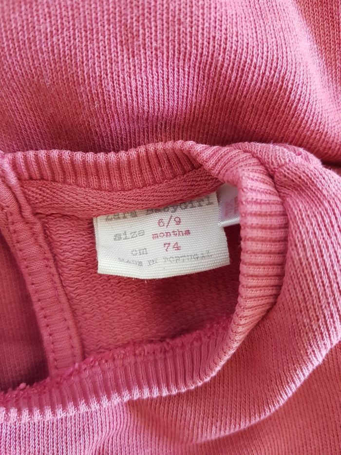 Tous mes articles Zara : #zarasev Tous mes pulls : #pullsev Tous mes habits fille 6 mois : #6moissevfille Tous mes habits fille 9 mois : #9moissevfille 🚨 Prix fixe Pull longues manches Marque : ZARA Couleur : vieux rose Taille : 6/9 mois - 74 cm État : bon état Petite partie de la broderie détachée (voir photo) 100% coton Retrait sur place ou envoi.
