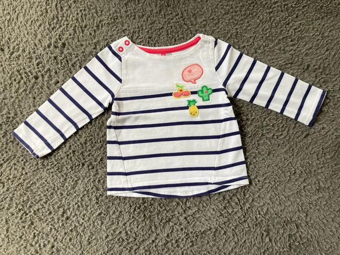 Teeshirt ML blanc et bleu marine 12 mois - photo numéro 1