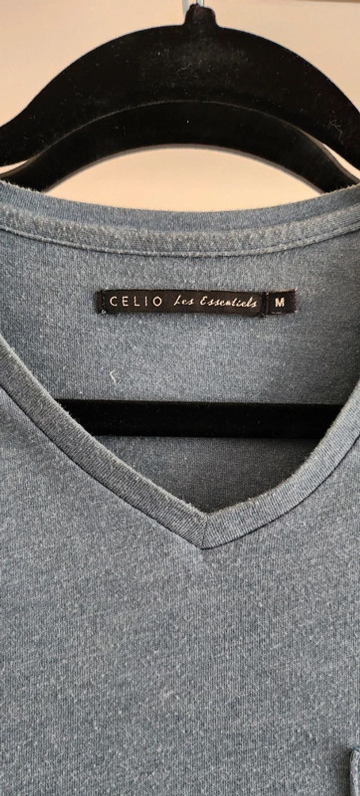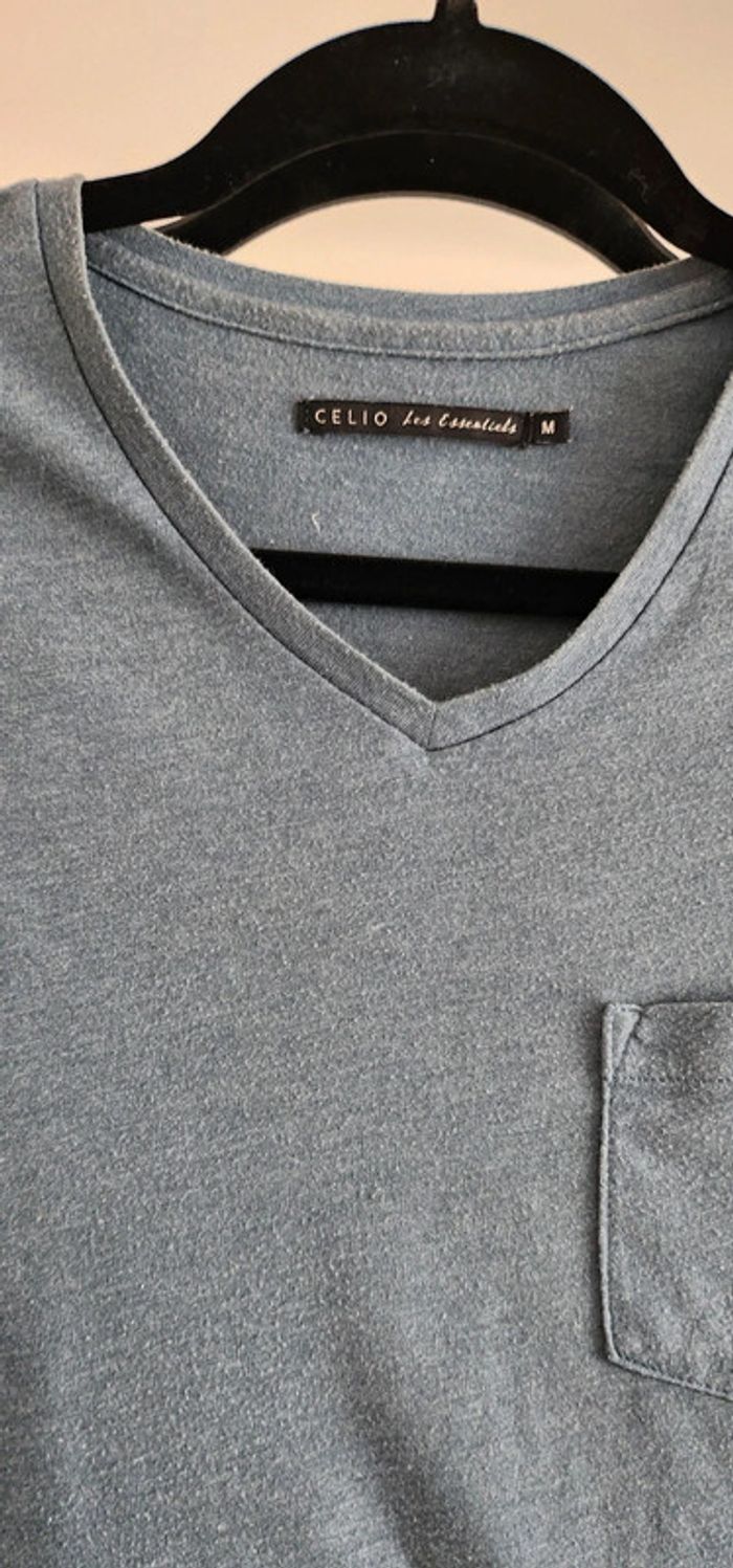 T-shirt manches courtes homme bleu gris taille M Célio - photo numéro 2