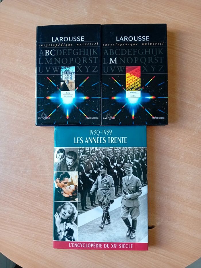 Larousse universel : - volume 3 = lettres B et C - volume 10 = lettre M Encyclopédie du 20ème siècle : 1930-1939 les années trente #patmon_livres