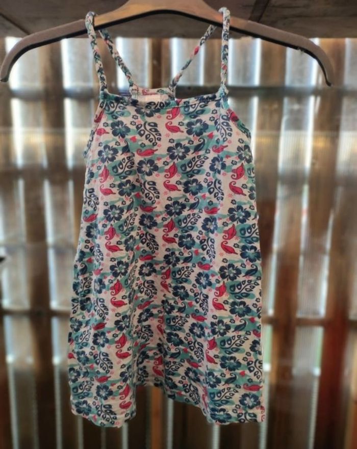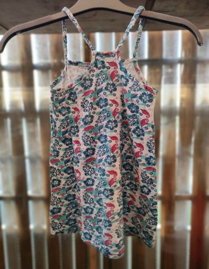 Petite robe courte a bretelles et motifs végétaux Taille 110/116 (5/6ans) Peu porter