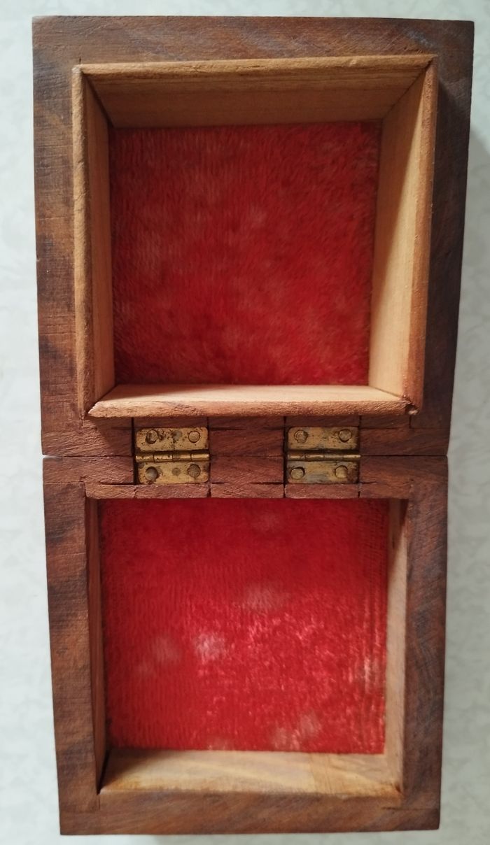 Boîte Mini à Bijoux en bois sculptée incrustation unique sapin et feuilles en laiton - photo numéro 4