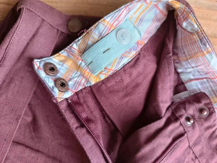 Taille réglable Fermeture éclair et 2 boutons pression 2 poches sur l'avant et 2 à l'arrière Revers en bas et bouton pression 80% Coton 20% Lin #clo160967_Fille_3ans