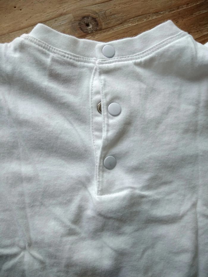 T-shirt blanc manches courtes Fermeture haut du dos par boutons pression 100% Coton Bords : 95% Coton - 5% Elasthanne Salopette short bretelles boutons pression 55% Coton - 45% Lin 18 mois - 81 cm #clo160967_Garçon_18mois