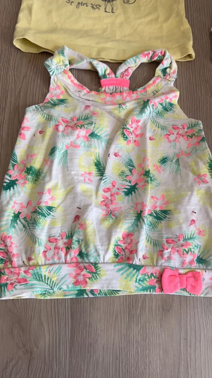 Lot de 4 tee shirt en 18 mois, 2 tee shirts Kiabi, 2 débardeurs 3 pommes et babyfoot Gemo
