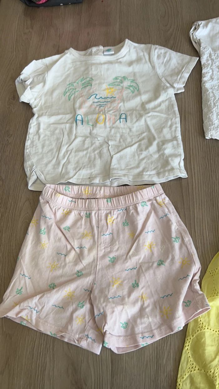 Lot de 4 vêtements Tex en 18 mois comptant, 1 ensemble Short/tee shirt, 1 tee shirt et 1 robe
