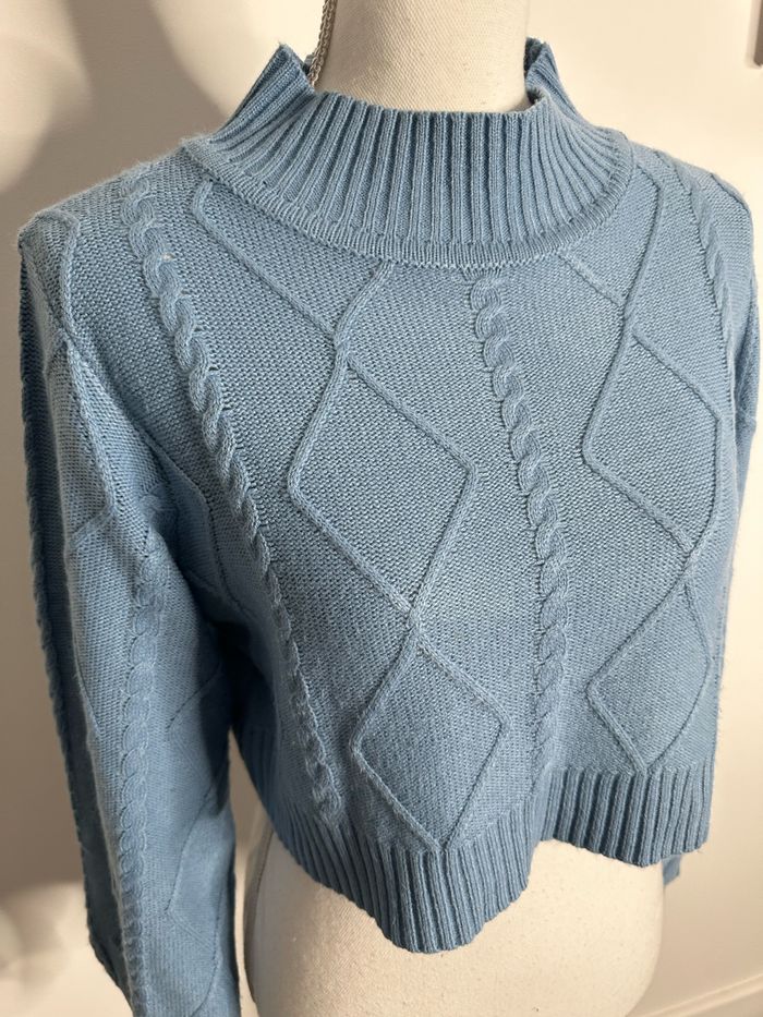 Pull crop top torsades bleu ciel Vintage T38 M - photo numéro 2
