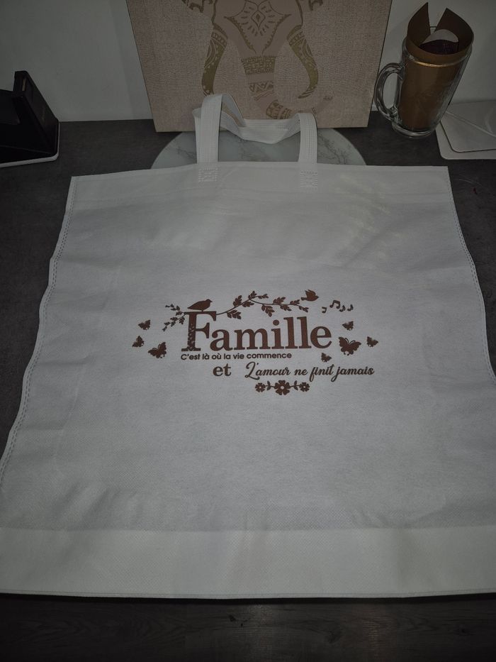 Grand sac non tissée polyester effet plastifier 49.5x49.5 cm Possible de choisir votre propre idée Phrase sur la famille