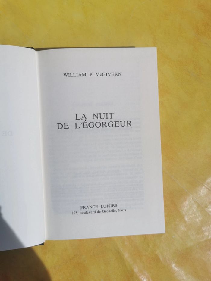 La Nuit de l'Egorgeur de William P. Mc Givern 267 pages. Usure du temps au niveau de la couverture (jaunie)