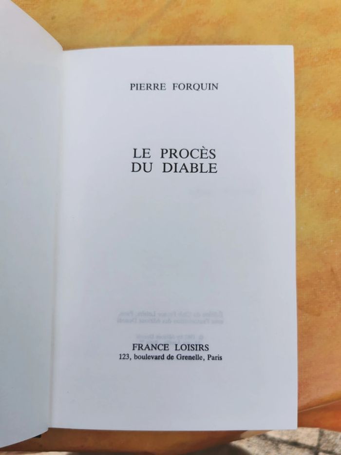 Le Procès du Diable de Pierre Forquin 190 pages. Usure du temps au niveau de la couverture (jaunie + trace d'humidité)