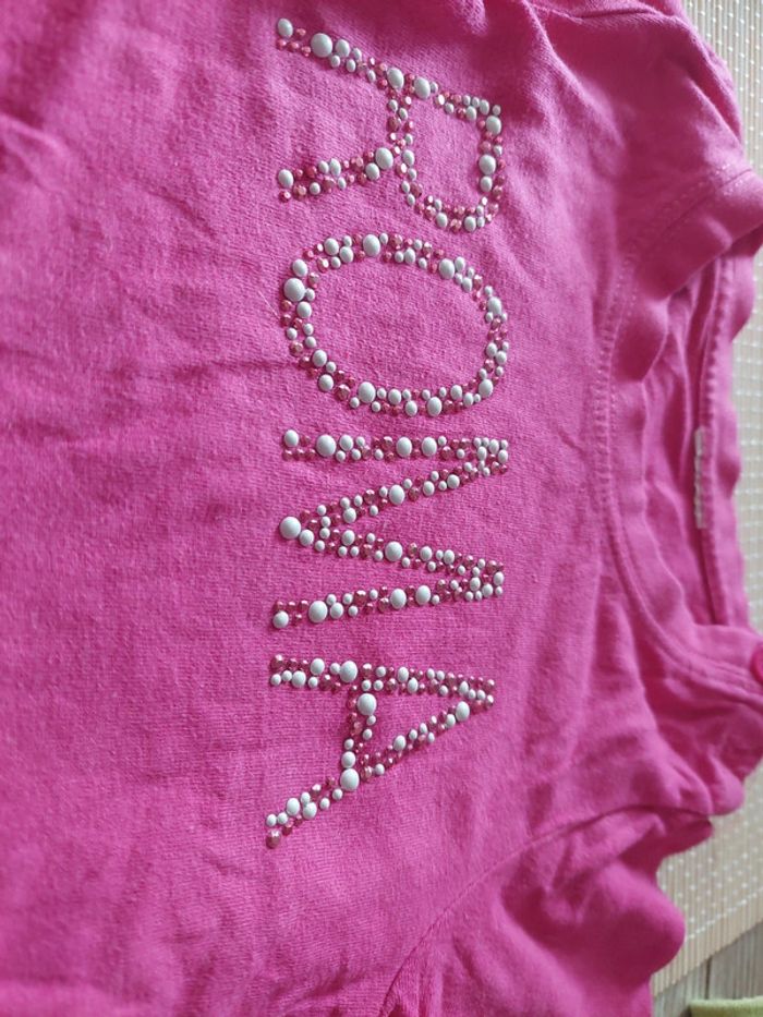 Tee-shirt manche courte. Très bon état. Manque aucune perle. Etiquette coupee, de souvenir 9 mois