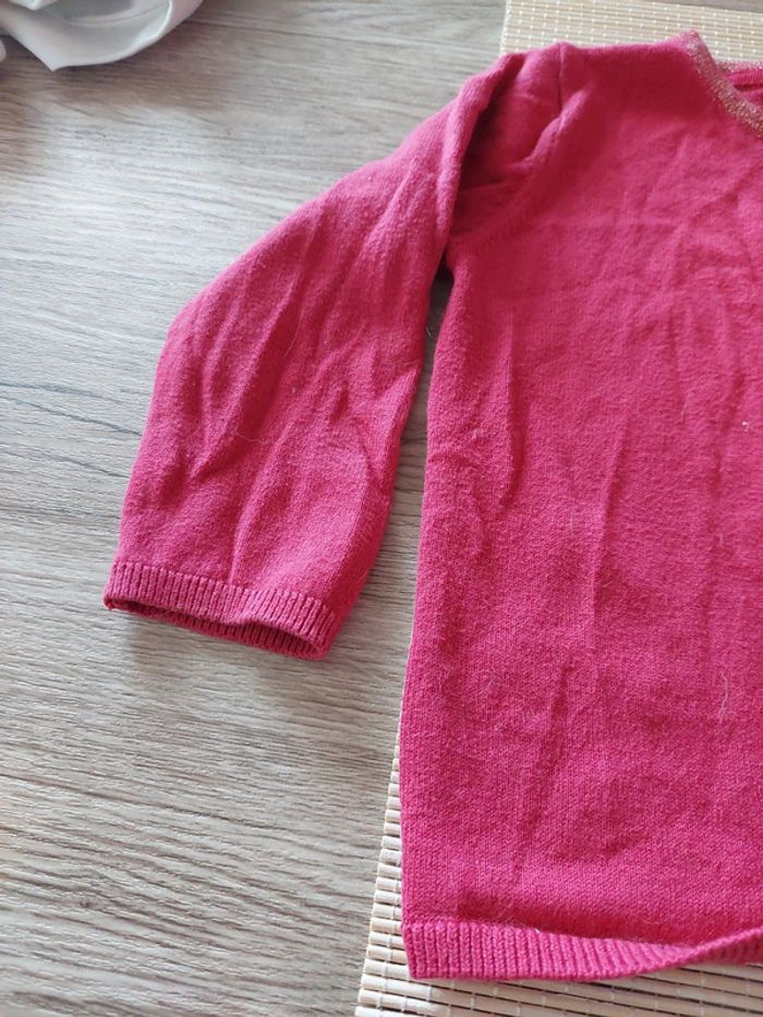 Petit gilet sympa avec son liseret pailleté. Très bon état. Juste froissé