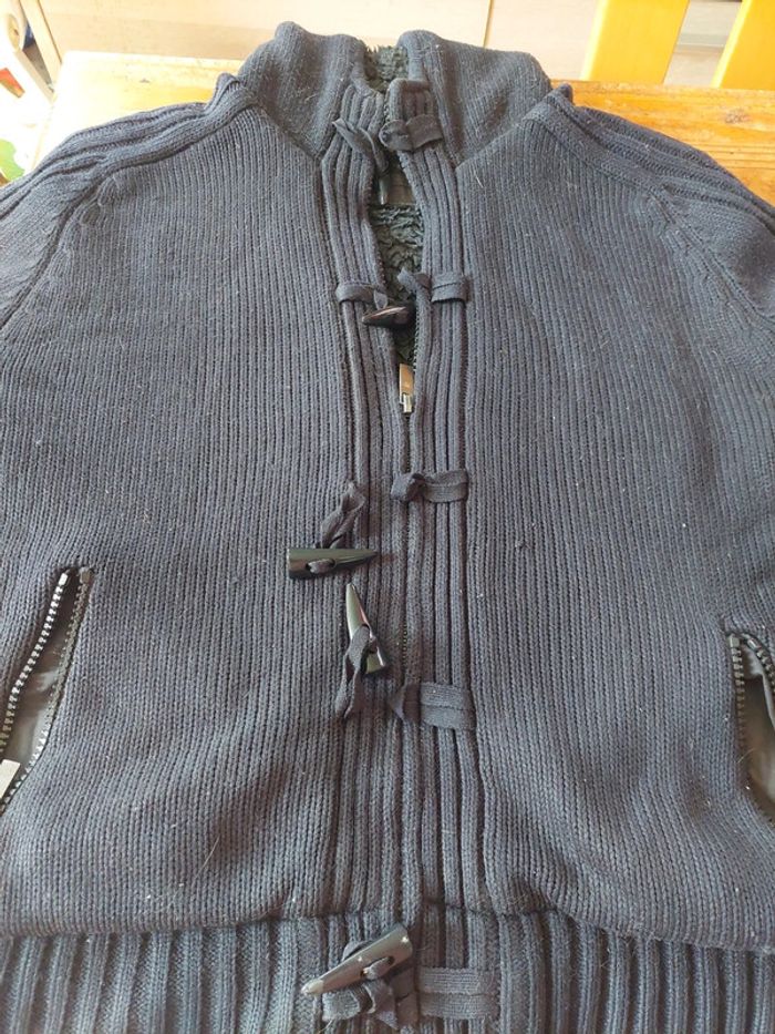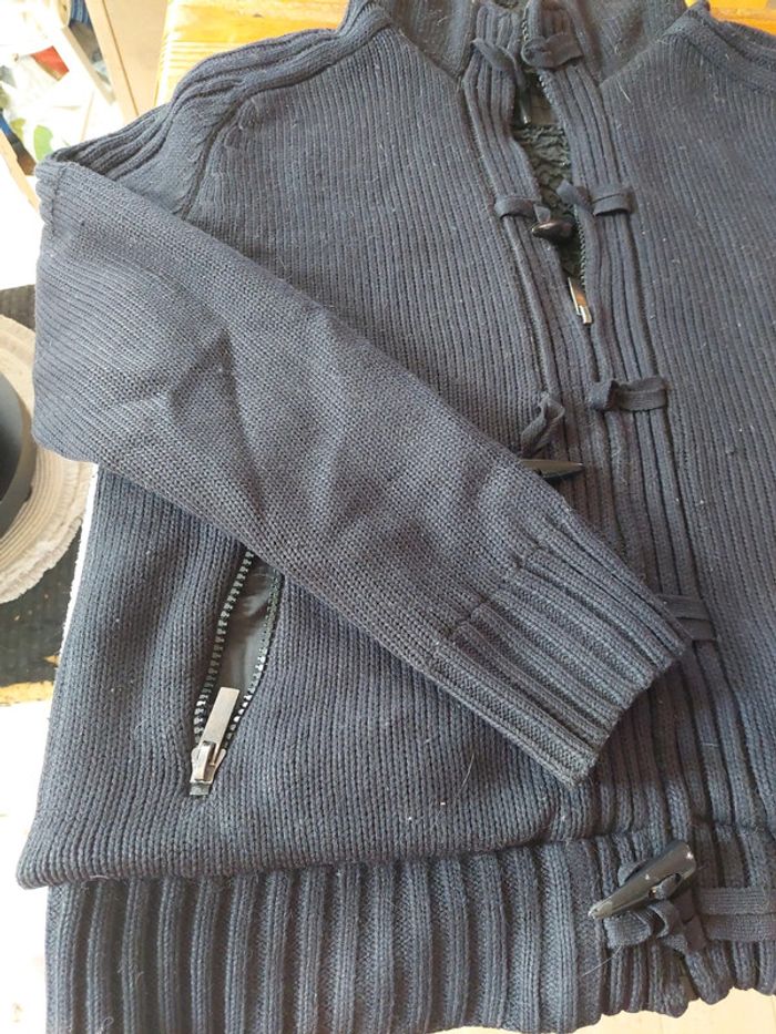 Gilet tres chaud. Bon état ( boit manche usee et petit accro ( chat 😡) ne gene pas pour une autre vie. Laissez la pas continuer a vieillir dans l'armoire 😉