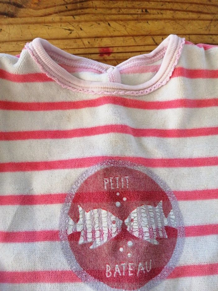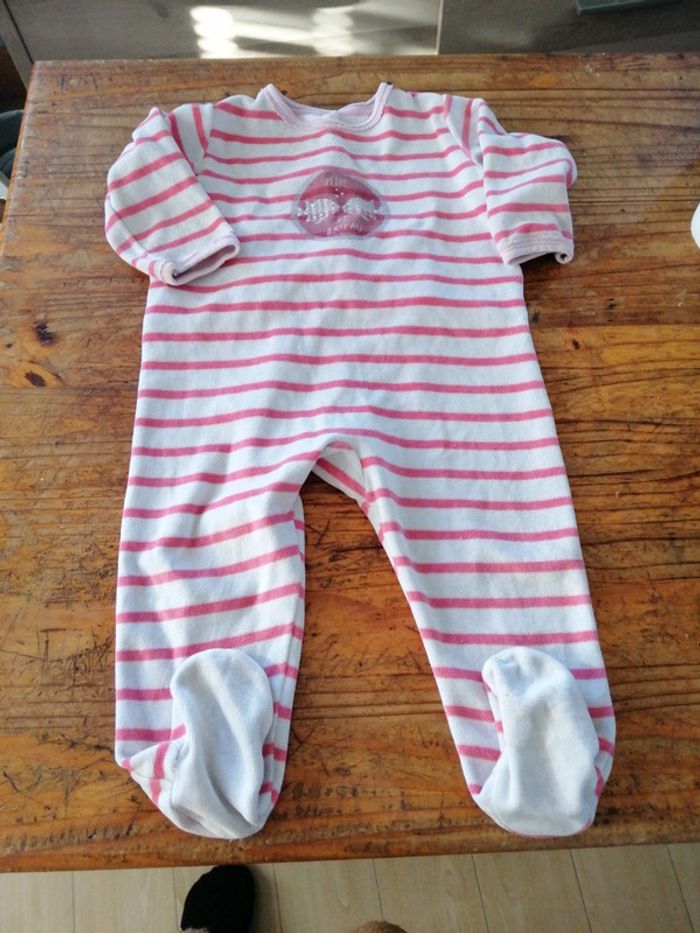 Pyjama bon etat encore. Petite tache des premiers repas🤣mais peut servir encore beaucoup. Peut faire une offre intéressante avec un lot